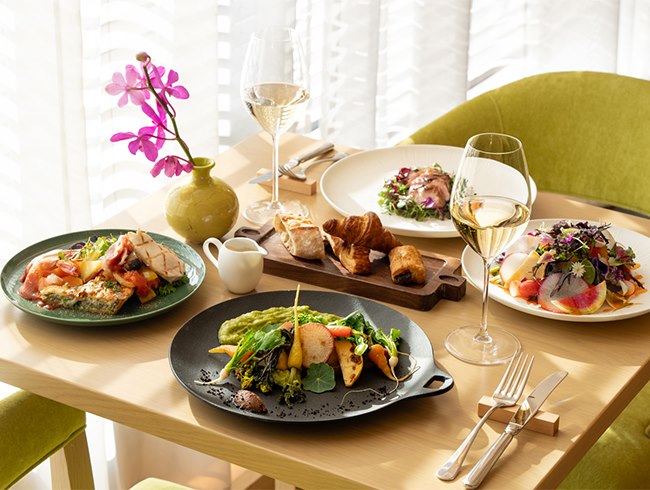 全国各地から届く旬の食材で仕立てた、季節感じるブラッスリー料理をご用意しております。グリーンの色彩が映える明るい空間で気の置けない友人やご家族とご馳走を囲む特別な時間をお過ごしください。